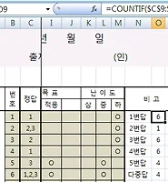 이것은 평가목표와 난이도를 표시한 것의 개수를 세는 수식인데, 그냥 간단히