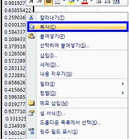복사하신후, 같은 셀범위에 오른쪽 클릭하여