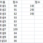 오늘도 두 개의 함수를 한꺼번에 다루겠습니다. 범위중에서 k번째로 큰 값을 찾는 LARGE함수와 k번째로 작은 값을 찾는 SMALL함수입니다. 구문도 간단합니다. LARGE(array,k) array k번째로 큰 값을 확인할 데이터 배열 또는 범위입니다. k 데이터의 배열이나 셀 범위에서 가장 큰 값을 기준으로 한 상대 순위입니다. SMALL(array,k) array k번째로 작은 값을 확인할 데이터 배열 또는 범위입니다. k 데이터의 배열이나 셀 범위에서 가장 작은 값을 기준으로 한 상대 순위입니다. SMALL함수는 LARGE함수를 알면 저절로 알게 되는 것이니까, 여기서는 LARGE함수만 예를 들어 설명하겠습니다. 학생들의 점수중에서 제일 높은 점수, 두번째로 높은 점수, 세번째로 높은 점수를 구하..