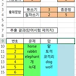 이렇게 단어시험 문제를 낸다고 합시다. 시험범위는 B1~D1이고총 시험문항수는 D4우리말 뜻쓰기 유형 문항수는 C3영어철자쓰기 유형 문항수는 C4무작위로 저 조건에 맞게 단어를 추출하려면 어떻게 해야할까요?대개 이런 유형의 문제들은 배열함수가 답입니다. 편의상 4번 문항의 수식을 예로 들겠습니다.B13에 들어가는 수식은 위와 같습니다. 배열수식이므로 마지막에 Ctrl-Shift-Enter입니다수식의 각 부분의 해석은 다음과 같습니다. 수식해석기능(함수)=IF($A13 OFFSET 위치 이동 함수(IF($A13한국어 문항수보다 문항번호가 작을 때, list시트의 C열(영어) 첫행 선택. 아니면 D열(한국어) 첫행 선택offset함수의 인수. 이 위치에서 특정 거리만큼 이동함.MOD 나머지의 크기에 따라 문..